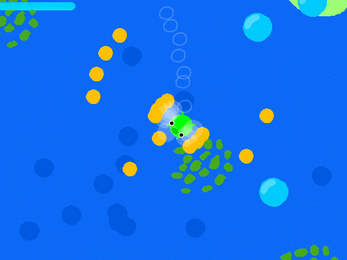 I really like the pop and comical feel of the graphics! The difficulty level is quite challenging, and I managed to clear the game while screaming after being hit over and over again. It was an interesting balance: if you move quickly, you are more likely to be hit by explosions, and if you go carefully, you recover slower and get hit by enemy bullets that cut you down.